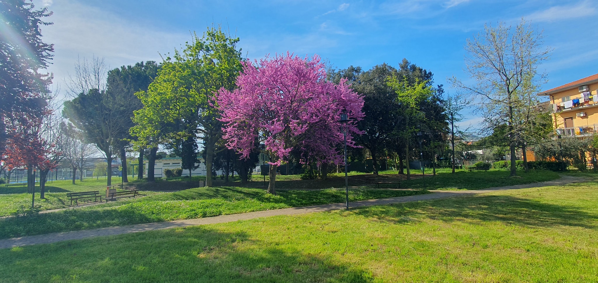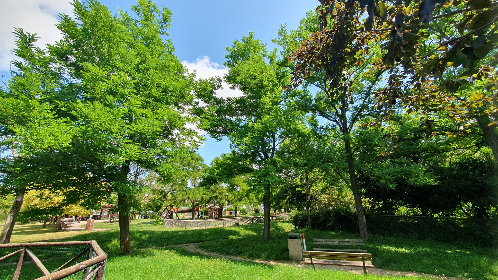 Piu’ di 100 alberi ad alto fusto e 90 essenze arboree, sparsi in olte 8000 metri quadri di parco.
